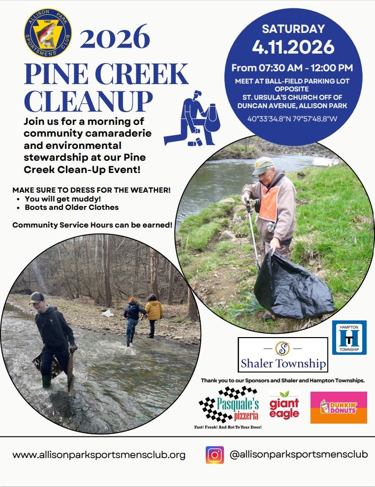 Meet at the ballfield parking lot opposite of St. Ursula's Church off of Duncan Avenue in Allison Park.